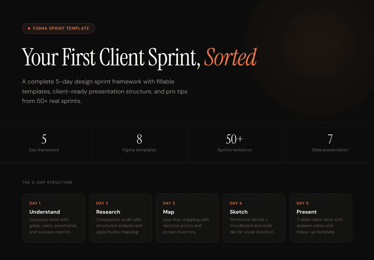 Your first client sprint shouldn't be improvised. The same 5-day framework we run with YC startups, open the file, fill in the blanks, look like you've done this a hundred times.